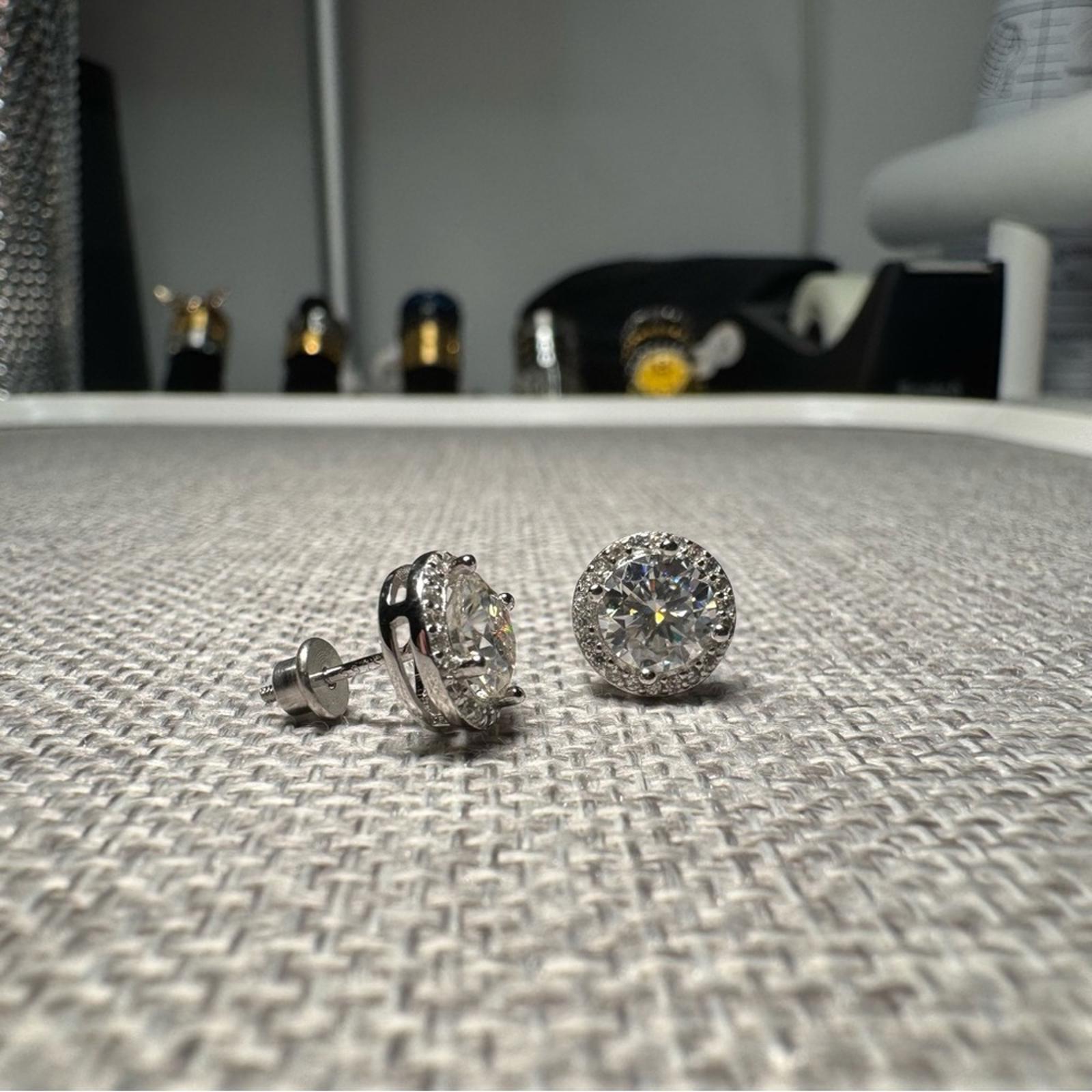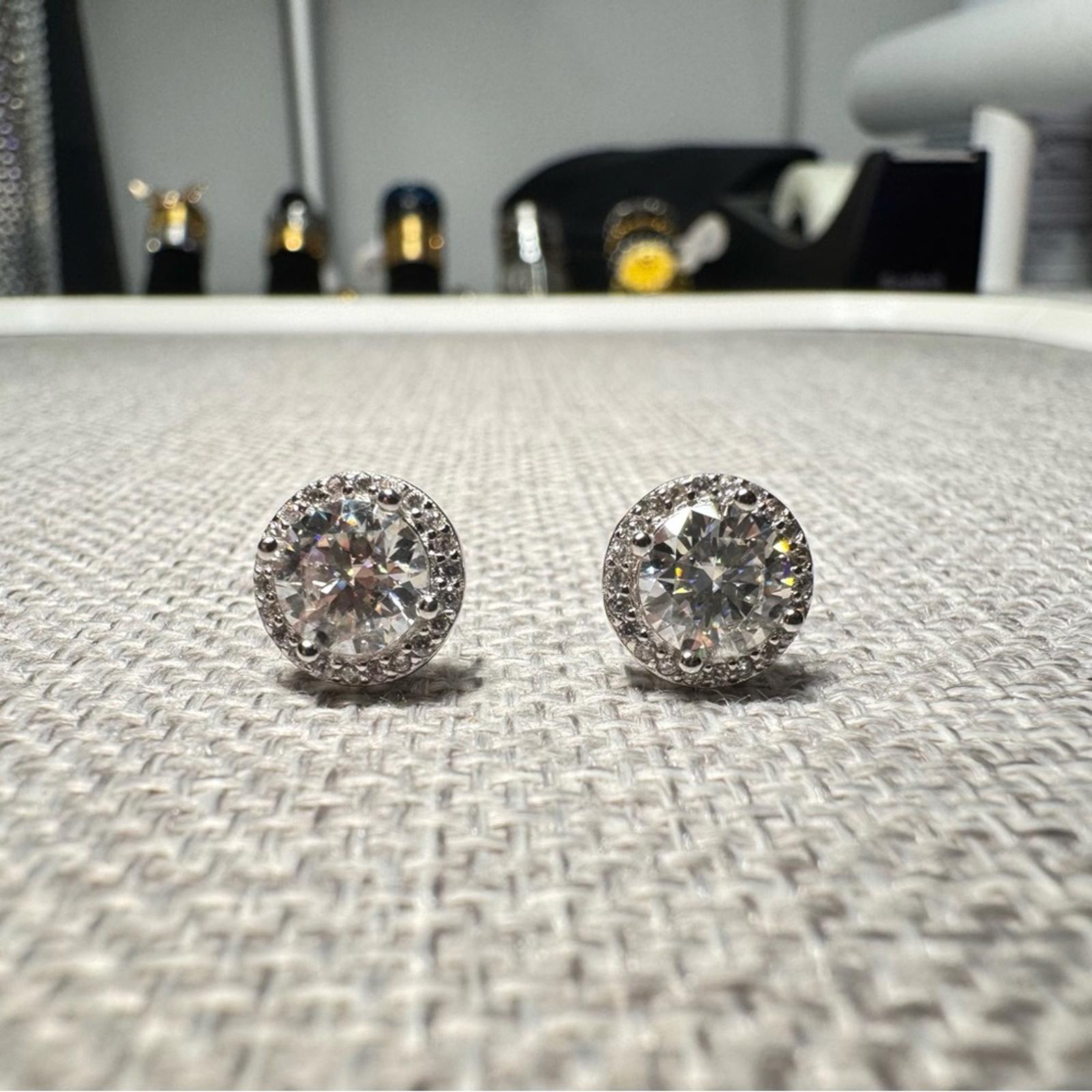 2.00 carat Moissanites 925 Sterling Silver Stud Earrings Halo Rounds with Screw Backs